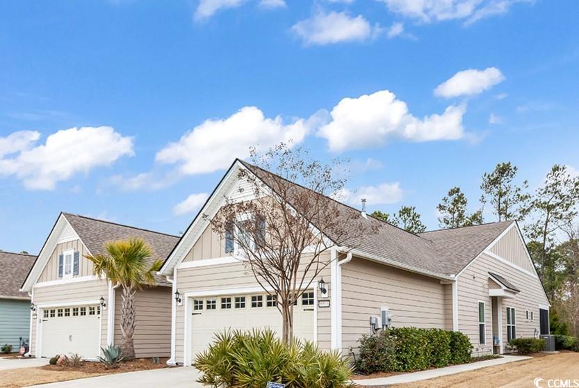 6013 Tramonto is an impressive property worth your attention. Situated on a premium lot, it backs up to a protected wooded area, which offers privacy. Its orientation ensures shaded afternoons on the porch without exposure to the hot summer sun. This open-floor-plan home features two bedrooms, a flex room, which could easily serve as a third bedroom or an office, and two full baths. Numerous upgrades include a dining room chandelier and five ceiling fans, all selected outside of the builder’s selection to create uniqueness. There are three-inch plantation shutters with uninterrupted views and hidden tilt-rod and luxury vinyl plank flooring in the main living areas. The interior is enhanced with craftsman baseboards, crown molding, and window trim. The kitchen boasts a custom walk-in pantry, which is unavailable in the Serenity model. It includes a random infusion glass backsplash, soft-close hinges on cabinet drawers and doors, quartz countertops, and stainless steel Frigidaire appliances. The refrigerator is a spacious French door, 4-door, 26-cubic-foot model. The great room is equipped with multi-slide patio doors that open to the porch, enhancing natural light and creating a spacious ambiance. The porch has a travertine-tiled floor, while outside, the stained patio slab is complemented by a gas line hookup for an outdoor grill. The master bedroom features a tray ceiling and extra shelving in the walk-in closet. The master bath includes a double vanity and a frameless shower door with a tiled bench for added luxury and comfort. In the laundry room, you will find a washer and dryer next to a custom cube storage cabinet with a countertop. The two-car garage is equipped with a utility sink, a custom workbench, a designated outlet for appliances, and an electrical setup for a generator. All this is is part of the Del Webb community within the prestigious Grande Dunes area of Myrtle Beach. You will find the Del Webb Amenity Center on the property and the Grande Dunes Ocean Club at the shore. The Amenity Center has it all. It is situated on the Intracoastal Waterway and about a mile from the ocean. Indoors, there is an Olympic-sized pool and fitness center as well as meeting and function rooms. The monthly calendar is filled with daily activities for hobby groups and social clubs. Outdoors, you can enjoy the warmth of a fireplace and television under the portico. Seek the shade of a cabana or the coolness of the lounges in the shallows of the outdoor pool. For outdoor activities, there are bocce and pickleball courts or you can just enjoy the firepit by the Intercoastal as you watch the sailboats float by and the sun set in the west. The Ocean Club is private and offers an upscale vacation-like experience for the whole family, with both an outdoor pool and private beach access. Both offer convenient towel service, and cabanas are available beachside. Enjoy oceanfront dining with drinks and light fare by the pool or elegant indoor dining. This is truly 55+ living at its finest! You will love making this house your home.