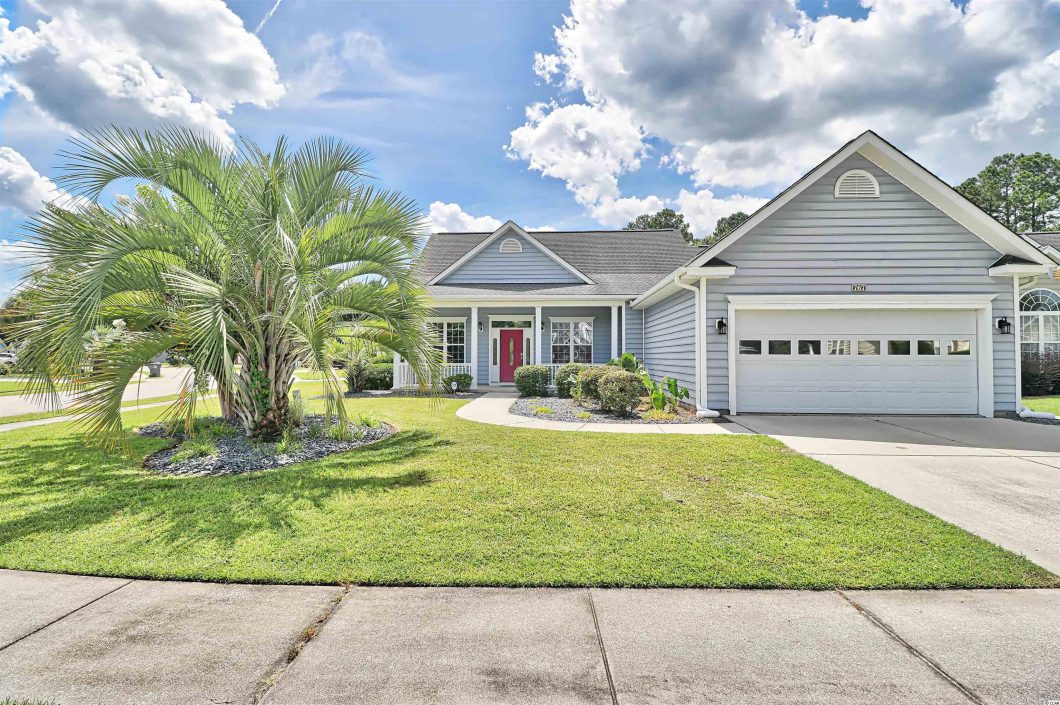 The “Katherine” model located in one of the best 55 plus communities – Myrtle Trace South!! Lovely 3 bedrooms, 2 bath, den/office, 2 car garage located on a corner lot. Pull into driveway take note of the large front porch, a place to turn neighbors into friends!! Enter the home to a welcoming floor plan to your left is the office/den comes with windows for natural life. The living room sliders lead to the lovely sunroom with easy breeze windows Dining room has windows for natural light, chair rail, plus a door leading to the kitchen. Living room has double sided fireplace ( propane tank is rented), 12′ ceiling. Owners suite has windows for natural light, walk in closet plus a second closet, carpet. Master bath has tub, shower, double sink vanity. Kitchen has all appliances, tile floor, lots of cabinets, and pantry. Check out the nice morning room off of the kitchen where you enjoy the double sided fireplace, sliders leading to the patio. Extras with this home is this home is a Santee Cooper Good Cents home, Llumar Magnum film on windows & doors, termite bond. Myrtle Trace South is a 55 plus community with many activities planned, low HOA dues which does include cutting of each lawn, there is a clubhouse and pool. Myrtle Trace South is located close to doctors, Conway Hospital, golf, shopping, Historic Conway, all Myrtle Beach has to offer including the Blue Atlantic Ocean.