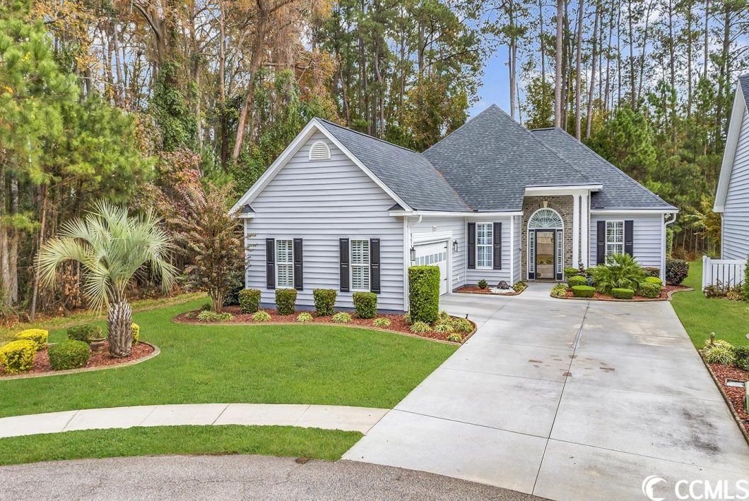 A MUST SEE IN THE PRESTIGIOUS 55+ COMMUNITY OF MYRTLE TRACE SOUTH! This meticulously maintained Sumter model built by Hall Construction has 3 bedrooms, 2 bath, All Season Room , and 2 car garage being sold furnished. Pull up to 828 Helms Way take note of the long driveway & the professional landscaped lot. Open the front door to foyer with closet, which is open to the dining room/living room with windows for natural light. French doors to your right leads to the master bedroom with walk-in closet, windows for natural light. The master bathroom is a true highlight with linen closet, double vanity with granite countertop, large garden tub (newer), walk-in shower, tile floor, and 2 windows for natural light. On the other side of the home there is a hallway with 2 closets that lead to the other 2 nice size bedrooms and main bath. Kitchen has upgraded cabinets, tile floor, pantry, granite countertop, stainless steel appliances with a counter depth refrigerator, breakfast bar.The morning room is open to the kitchen which has a bay window with breakfast nook, tile floor and ceiling fan. Open the doors leading to the all season room with ton of windows to give great view of the private back yard, tile floor, and mini split unit for heat/air. The laundry room has washer, dryer, cabinets that lead to the garage. The garage has been organized with Gladiator storage cabinets and racks. The patio out back will give you privacy with a water view, and woods. Some of the improvements are newer roof, HVAC, vinyl siding, gutters with gutter helmets, hot water heater, HVAC enclosure, tile floors, bath tubs, All Season Room, hardwood floors, Plantation Shutters, garage screen, 2 water meters. Myrtle Trace South offers a fullfilling lifestyle with a community pool & clubhouse. There are many organized activities so you can stay busy or as laid back as you desire. You do not need to bring that lawn mower, the HOA cuts each of the lawns. The community is just minutes to Conway Hospital, doctors, Burning Ridge Golf Course, Historic Conway and all Myrtle Beach has to offer including the Atlantic Ocean.